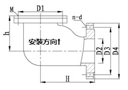 The product is installed in the water collecting tank of the outer floating roof tank, and the flange end is connected with the central drainage pipe. The installation direction is with the valve port facing upward. See the product structure drawing